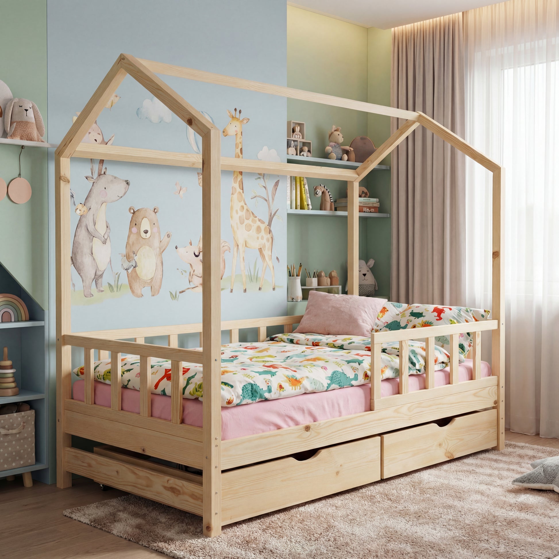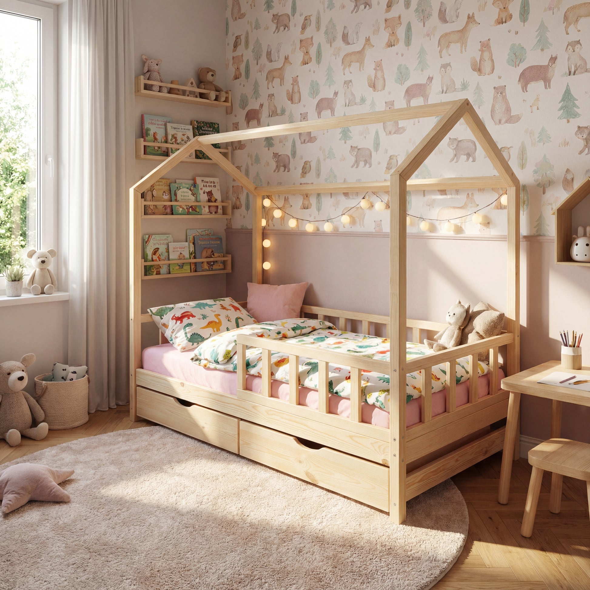 Опция чекмеджета: Нашите Монтесори легла са оборудвани с удобни, свободно стоящи чекмеджета на колелца – лесни за издърпване и прибиране дори от най-малките. Стилен начин да организирате детските вещи и играчки с лекота!