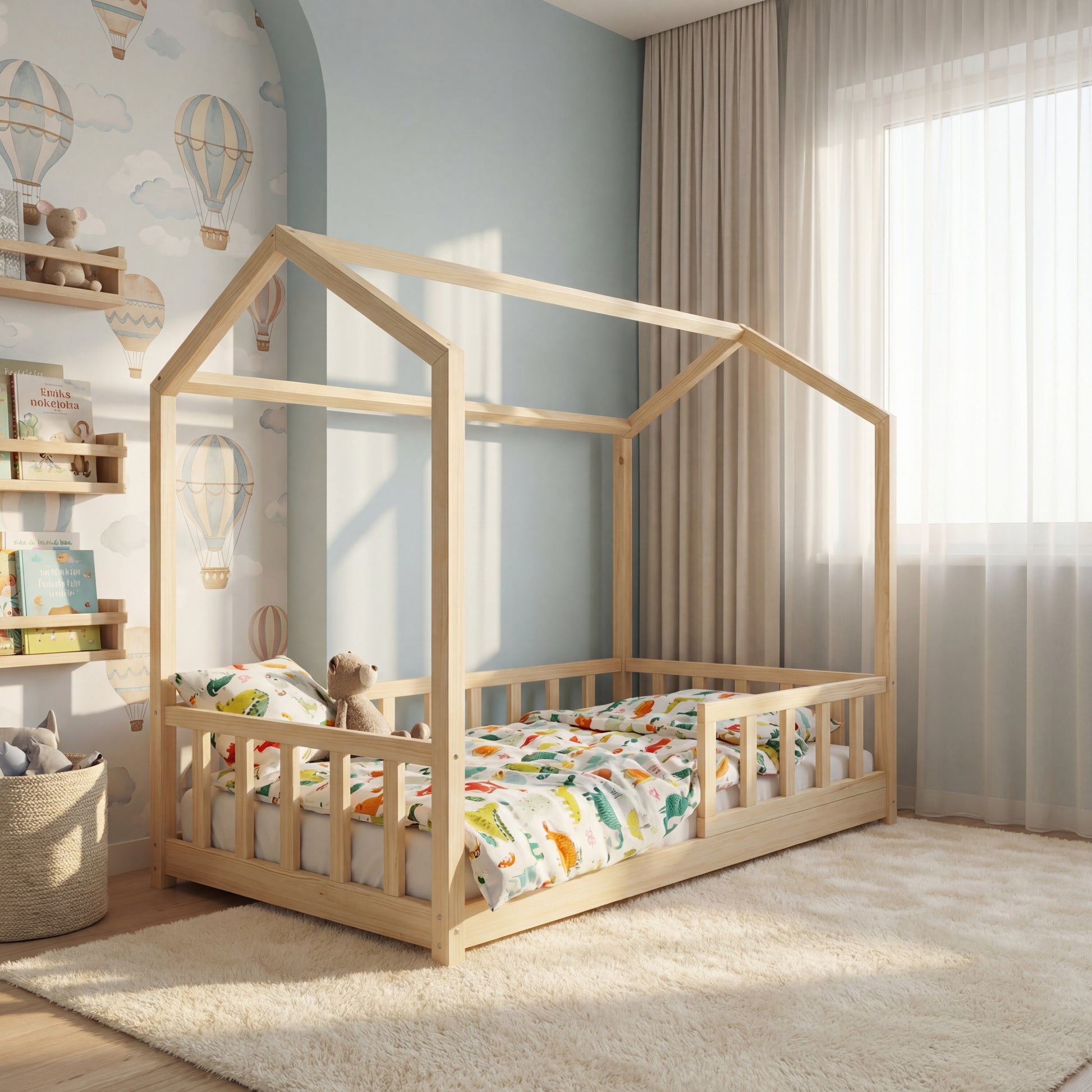 Безопасност: Всички наши легла Монтесори се изработват с по-високи решетки които реално предпазват вашето детенце. Масово другите предлагани легла с предпазни решетки имат проблем: решетките са толкова ниски, че когато сложите матрака той е над самите решетки като се губи смисъла от тях.